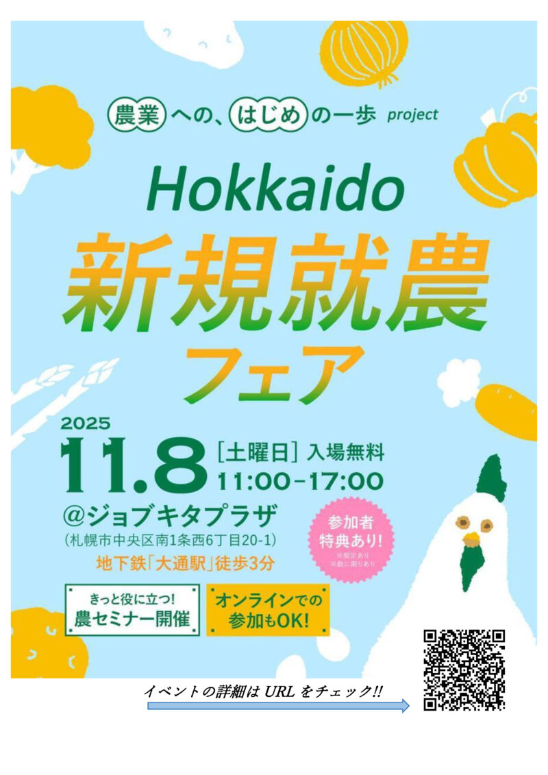 令和7年11月8日(土)「新規就農フェア」ジョブキタプラザ会場に出展