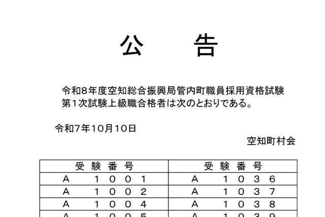 お知らせ&町の話題 令和8年度空知総合振興局管内町職員採用資格試験1次合格者 令和8年度空知総合振興局管内町職員採用資格試験1次合格者 第1次試験の合格者は次の通りです。 PDFダウンロード PDFダウンロード 2025.10.10 お知らせ&町の話題
