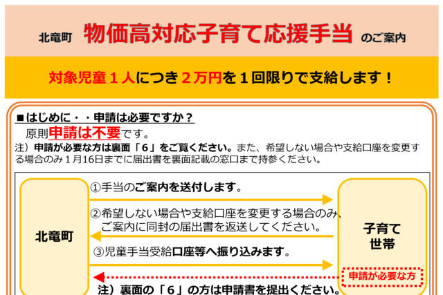 お知らせ&町の話題 北竜町物価高対応子育て応援手当について