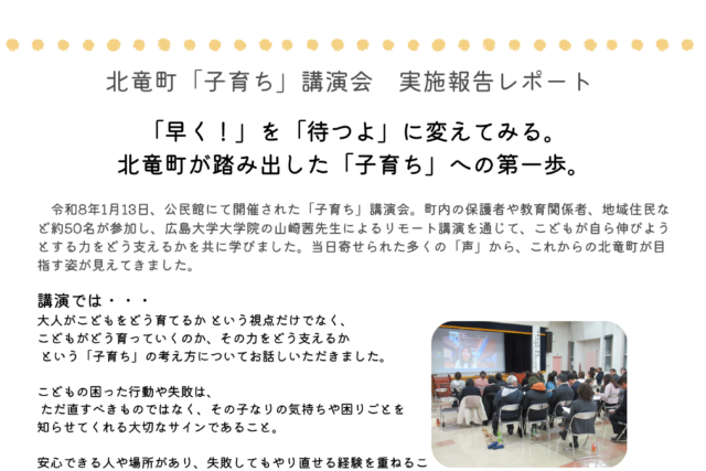 お知らせ&町の話題 「子育ち講演会」を開催しました